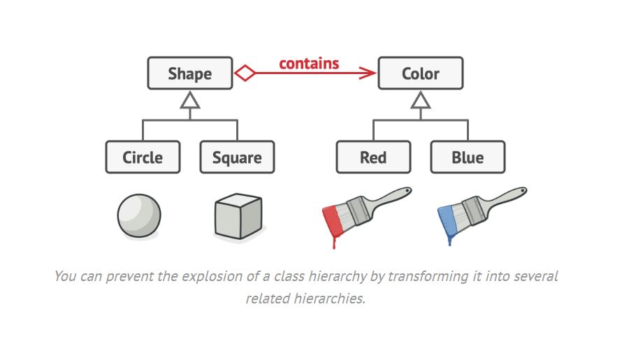 This means to create a bridge interface that uses OOP principles to separate out responsibilities into different abstract classes.