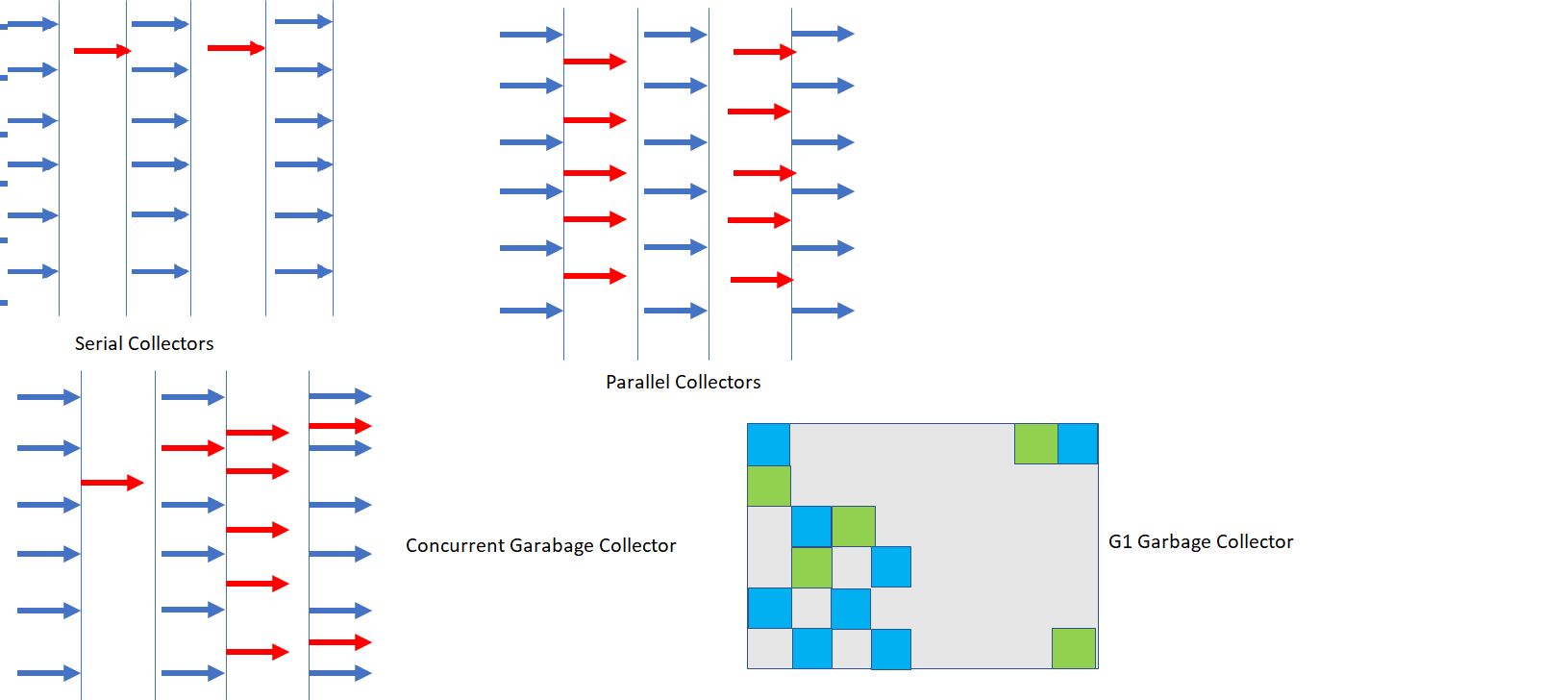 - A thread that performs GC along with the application execution as the application runs doesn’t wait for the old generation to be full.