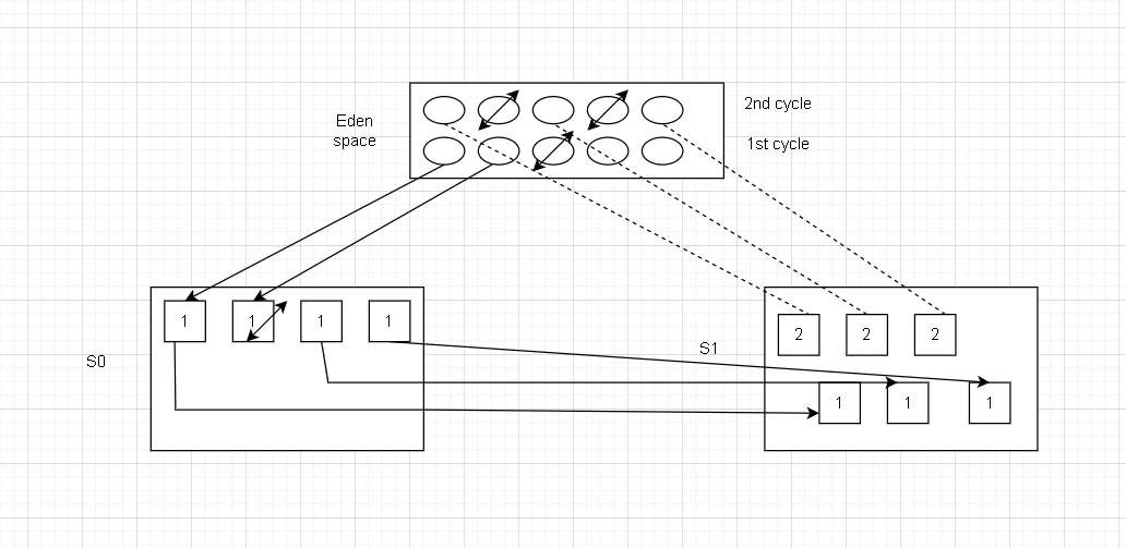 - The reason , why there are 2 survivor space: if the objects survives a lot of cycles of GC, then it moves from S0 -> S1. then to old generation.