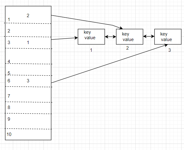 So, the most recently used key value will be at the last of the linked list.